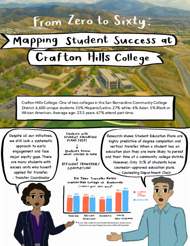 To support research dissemination and knowledge mobilization, the Crafton Hills College and UCLA teams wanted to creatively translate their technical report to reach a more expansive audience via illustrative storytelling.